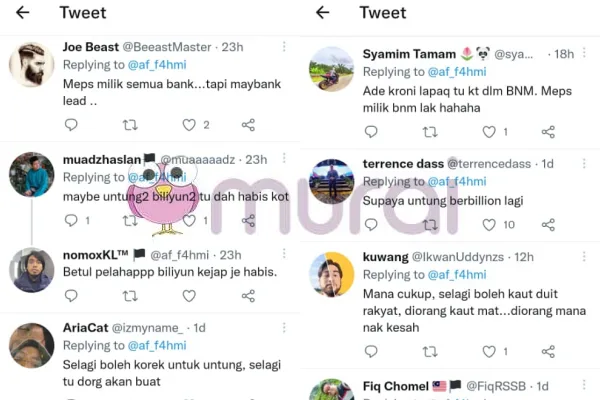 “Mungkin untung-untung bilion-bilion tu dah habis kot.” Ciap mereka