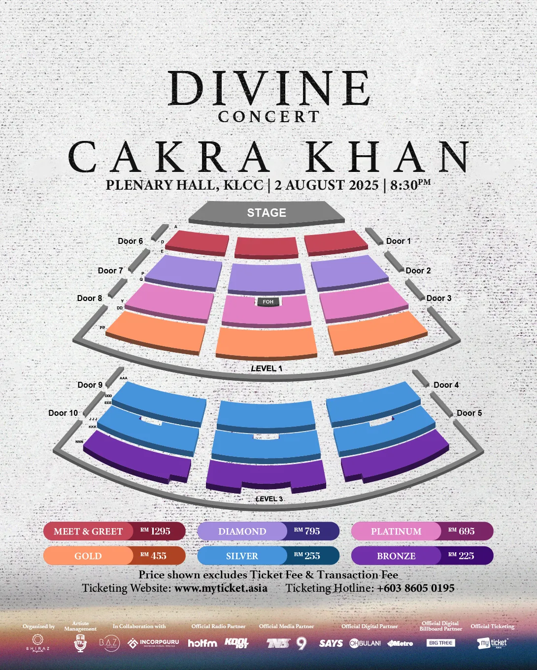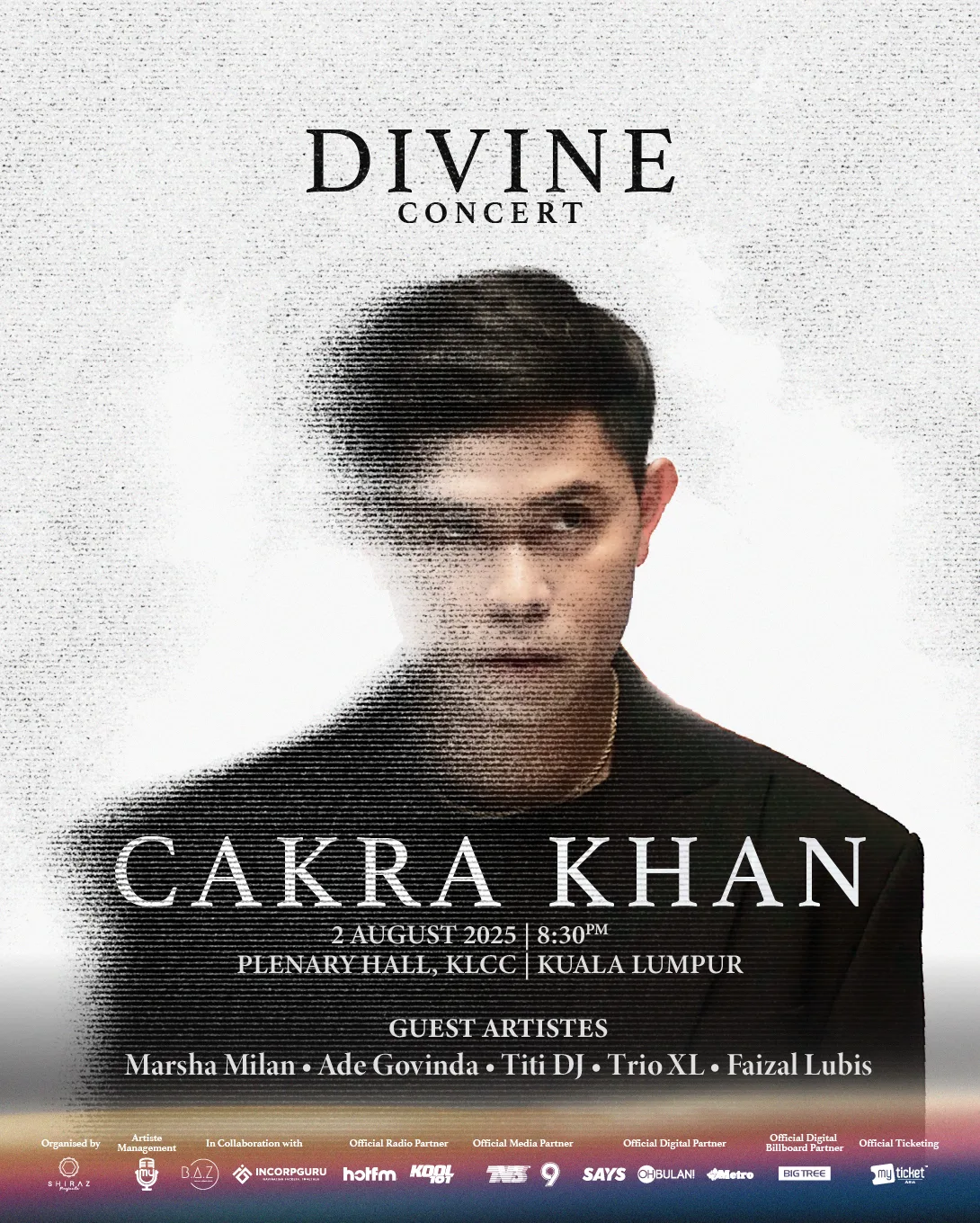 Tiket untuk Divine Concert – Cakra Khan mula dijual pada 12 Februari 2025 jam 10 pagi.