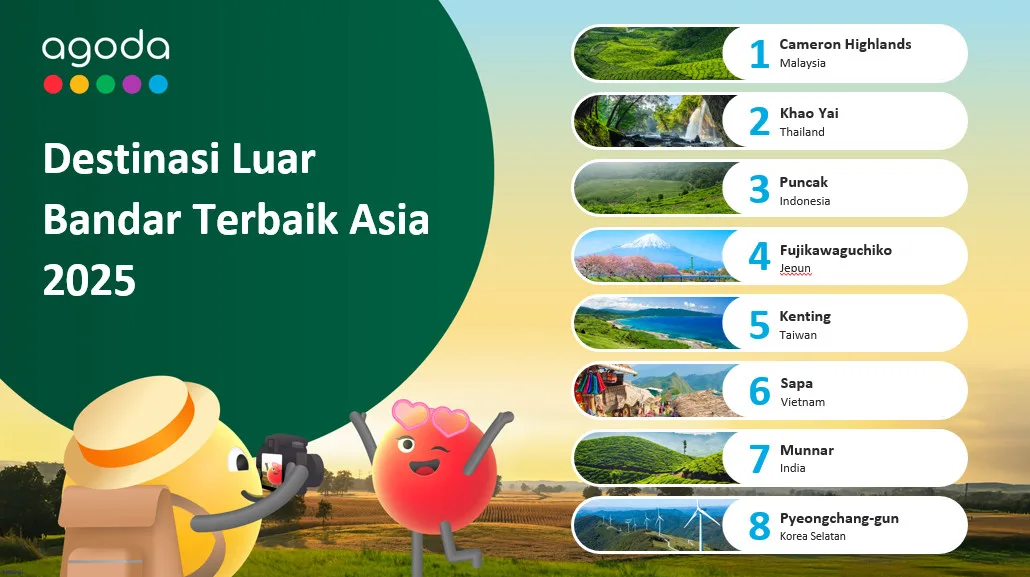 Khao Yai di Thailand dan Puncak di Indonesia melengkapkan tiga destinasi teratas, menunjukkan peningkatan minat pelancong terhadap lokasi yang menawarkan keindahan alam dan ketenangan.