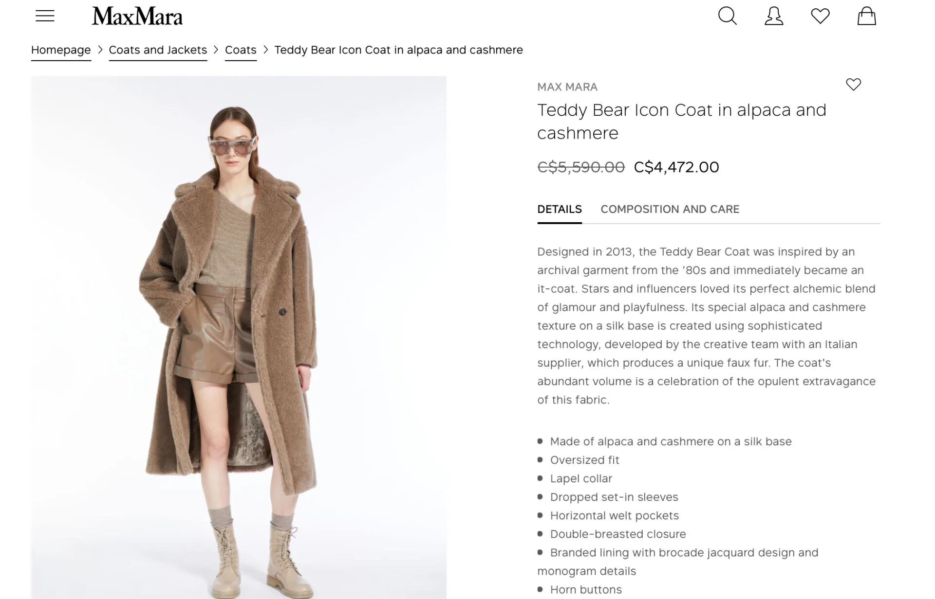 Kot yang diberi nama Teddy Bear Icon Coat sangat istimewa kerana terhasil daripada gabungan fabrik alpaca dan kashmir menggunakan teknologi canggih.