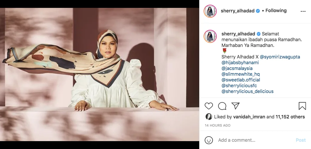 Pengacara dan pelakon ini pernah tular kerana tersasul menyebut Ramadan menjadi Marhaban ketika siaran langsung Muzik-muzik tahun lalu. Tahun ini, Sherry juga tidak ketinggalan mengucapkan salam Ramadan kepada peminat sambil mengenakan tudung.
