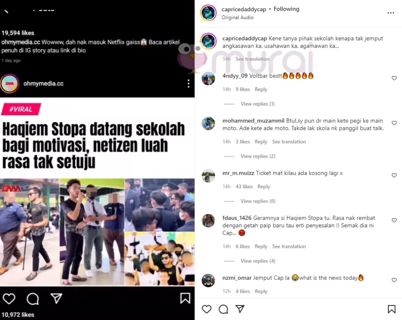 Nama influencer TikTok Haqiem Stopa sebelum ini menjadi perhatian ramai selepas dijemput menjadi penceramah di sebuah sekolah di Kuala Lumpur yang mendapat reaksi dari pelbagai pihak termasuklah penyanyi rap, Caprice yang turut bersuara terhadap isu tersebut.