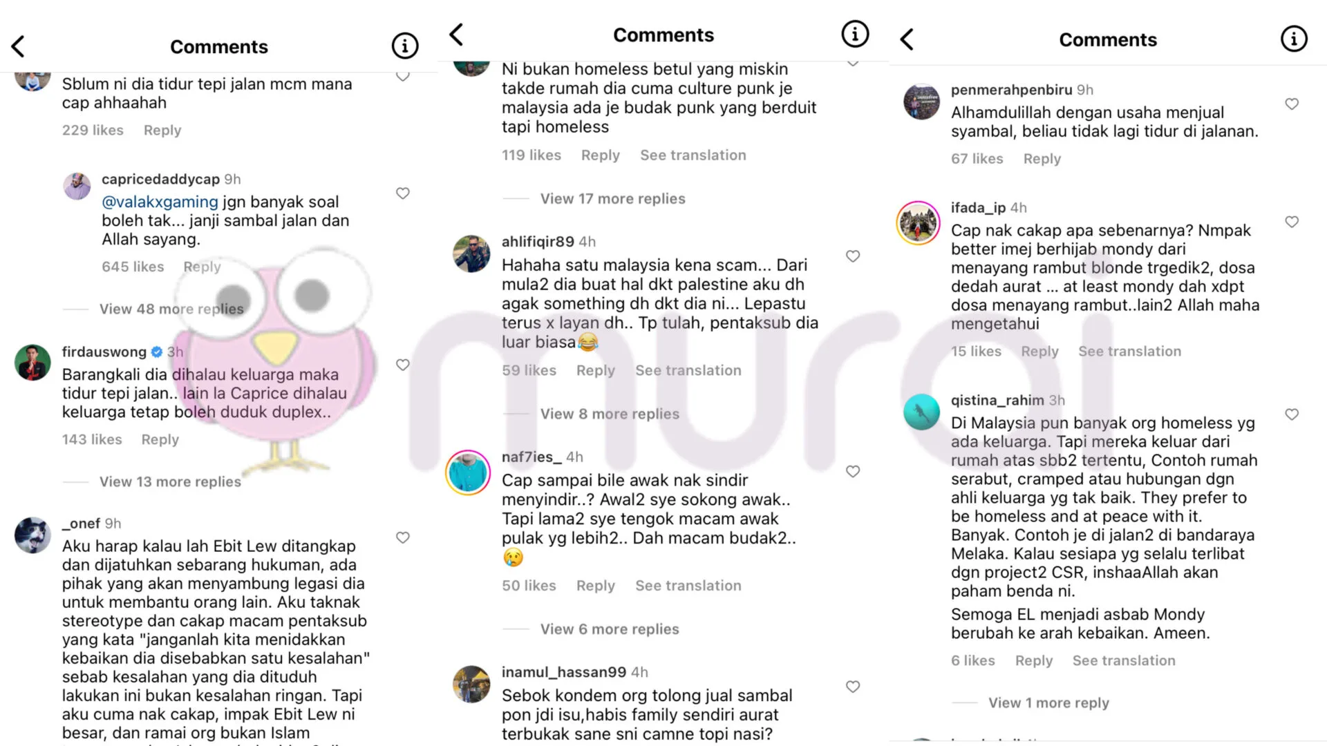 “Barangkali dia dihalau keluarga maka tidur tepi jalan. Lain la Caprice dihalau keluarga tetap boleh duduk duplex.”-Firdaus Wong
