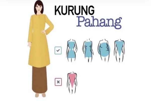 Mereka yang tinggi lampai dan memiliki badan yang kurus, baju kurung Pahang adalah pilihan terbaik kamu. Baju jenis ini akan compliment keseluruhan penampilan kamu tau. Psst… Kalau kamu pendek dan chubby, jangan sesekali pakai baju jenis ini kalau tak mahu nampak lagi kembang.