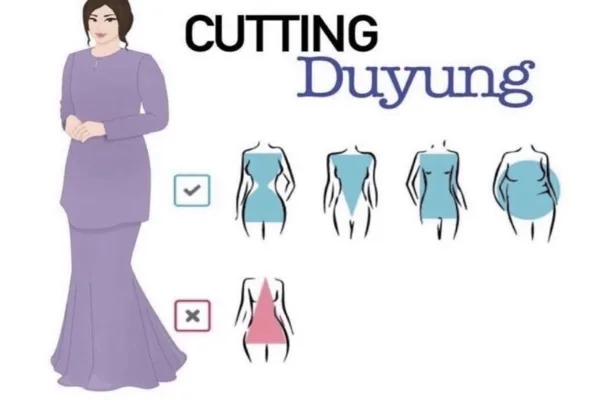 Mereka yang miliki bentuk badan seperti hourglass, segi tiga terbalik, segi empat dan epal, kamu perlu memilih baju yang mempunyai potongan duyung. Tapi kalau kamu rasa bahagian bawah badan sedikit besar, jangan pakai baju jenis ini okay?