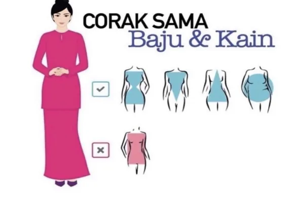 Wanita yang badannya rendah dan kecik boleh jadikan baju dan kain memiliki corak yang sama sebagai pilihan kerana baju jenis ini dapat memberikan ilusi badan yang lebih tinggi.