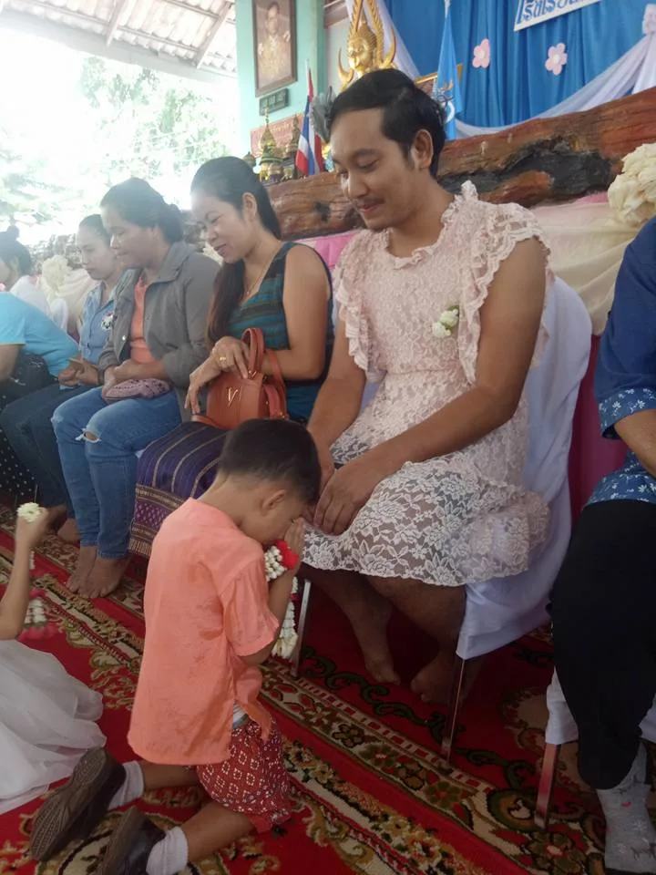 Kornpat Ae Sukhom mengambil gambar seorang lelaki yang duduk di antara ibu. Lelaki tersebut bernama Chatchai Parn-uthai. Dia duduk di barisan bangku ibubapa dengan menggenakan pakaian wanita.