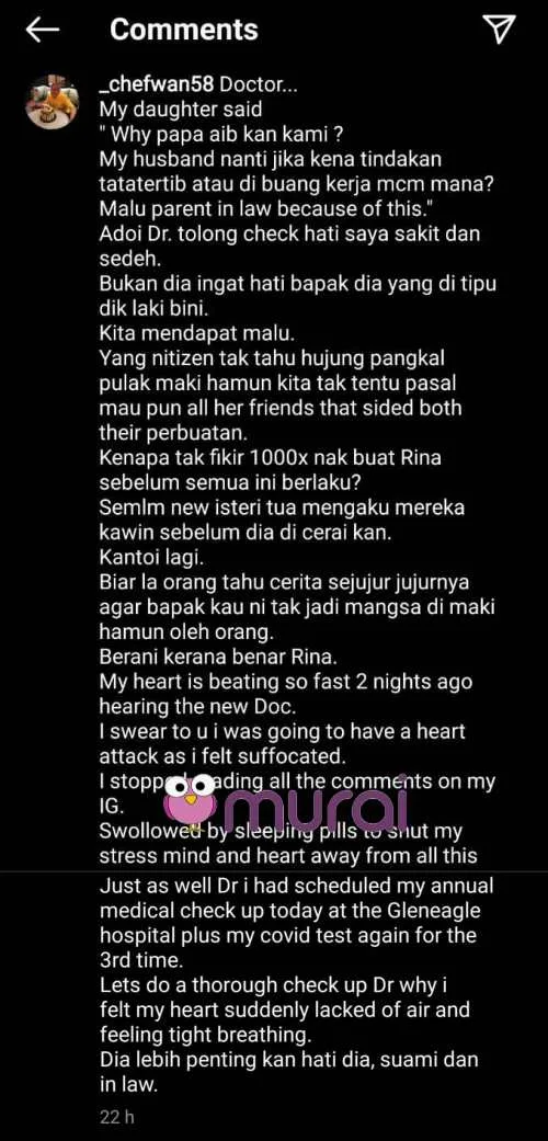 Menurut Chef Wan, sejurus membaca komen daripada netizen dan teguran Serina mengenai pendedahkan perkahwinannya yang kononnya seperti mengaibkan mereka, chef selebriti itu mengalami sesak nafas.