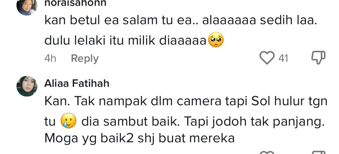 Meninjau di ruangan komen, rata-rata netizen meluahkan rasa sebak melihat pasangan selebriti itu yang dahulunya pernah menjadi pasangan suami isteri bahagia.