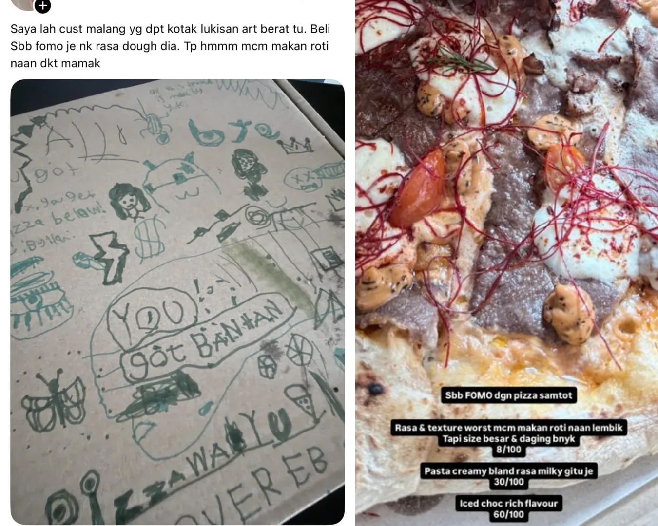 “Saya lah pelanggan malang yang dapat kotak lukisan art berat tu. Beli sebab fomo je nak rasa doh dia. Tapi hmm, macam makan roti naan dekat mamak.
