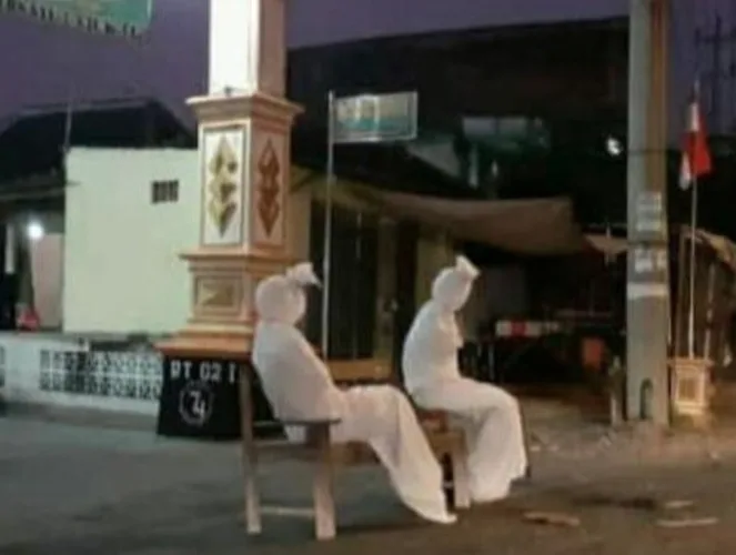 Dipetik dari Detik.com, mereka menjadikan hantu Pocong sebagai penjaga wilayahnya. Menariknya, pocong jadi-jadian ini bertujuan untuk mengingatkan penduduk untuk mengingati kematian.