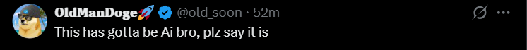 Foto yang dikongsikan di X itu pantas mencetuskan reaksi bercampur dalam kalangan warganet. Ramai meluahkan rasa sukar mempercayai keaslian gambar tersebut, malah ada yang menyangka ia hasil teknologi kecerdasan buatan (AI).