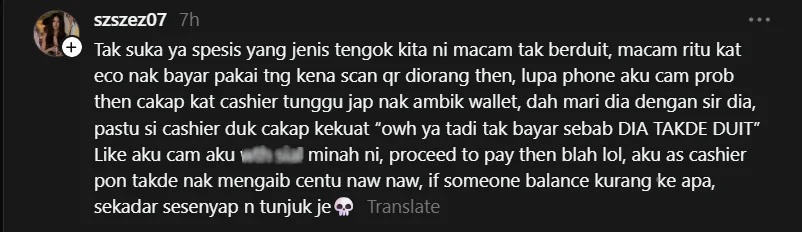 Walaupun telah menjelaskan bahawa pembayaran sudah diselesaikan, staf tersebut masih mempersoalkan perkara itu dan hanya membuat semakan selepas pelanggan menunjukkan resit.