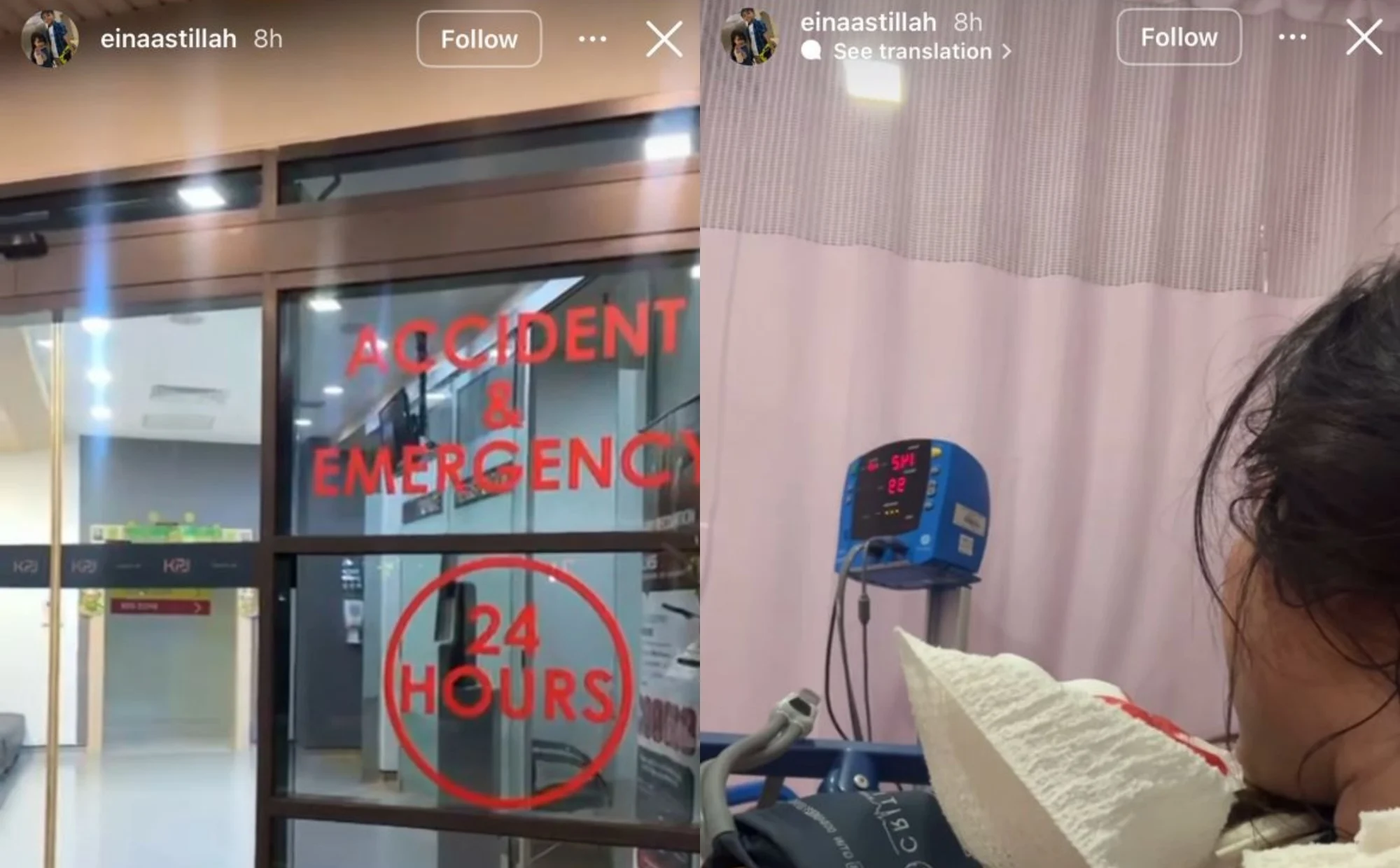Menerusi beberapa hantaran di Instagram ibunya, Eina Astillah mendedahkan bahawa penyanyi itu sedang mendapatkan rawatan di unit kecemasan hospital.