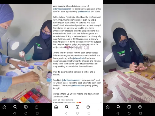 “Alhamdulillah sangat bangga dengan @dahliaarissaaaron kerana berani, keluar dari zon selesa dia dengan menghadiri @ellasandera kelas SFX.