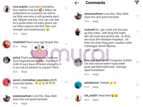 “Aww!! Tahniah Dahlia! Dia ada bakat semulajadi harap boleh asah jadi lebih baik. Semoga dipermudahkan!” komen mereka