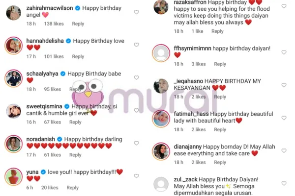 “Selamat hari lahir D! Semoga Allah mudahkan segalanya dan jaga diri” komen peminat
