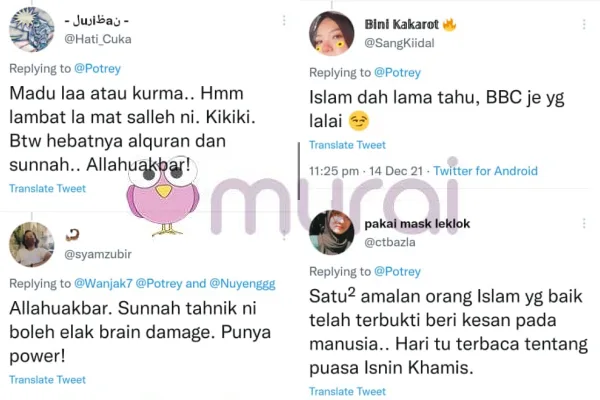 “Madu laa atau kurma.. Hmm lambat la mat salleh ni. Kikiki. By the way hebatnya al-Quran dan Sunnah.. Allahuakbar!” Ciap @Hati_Cuka