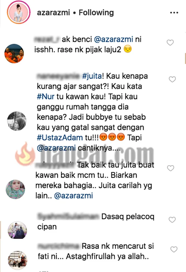 Di ruangan komen juga, watak lakonannya menerusi drama Nur 2 turut dikecam. Mana taknya, lakonan Azar sebagai Juita cukup menjadi sehingga ramai yang terbawa-bawa dengan emosi terlalu benci dengan Juita.