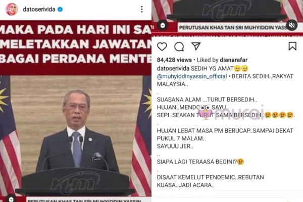 Usahawanita ini juga menyatakan seisi alam juga seolah-olah menangisi perletakan jawatan Tan Sri Muhyiddin semalam dengan hujan lebat sepanjang pengumuman dibuat oleh mantan Perdana Menteri semalam.