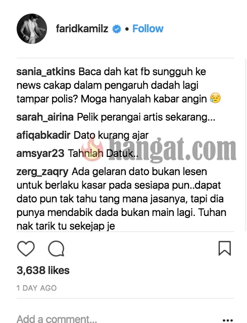 Sebaik sahaja mengetahui akan kes ini, rata-rata netizen mengutuk tindakan Farid yang dianggap kurang ajar dan tidak menunjukkan keperibadian seorang yang bergelar Datuk.