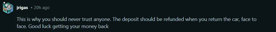 Satu perkongsian di Reddit baru-baru ini mencetuskan perhatian apabila seorang individu mendakwa deposit sewaan kereta miliknya berjumlah RM1,300 masih belum dipulangkan walaupun kenderaan telah diserahkan semula.