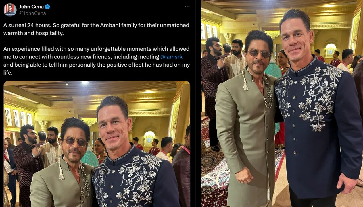 Baru-baru ini, John Cena turut melahirkan rasa kagum terhadap SRK selepas pertemuan mereka di majlis perkahwinan Anant Ambani.