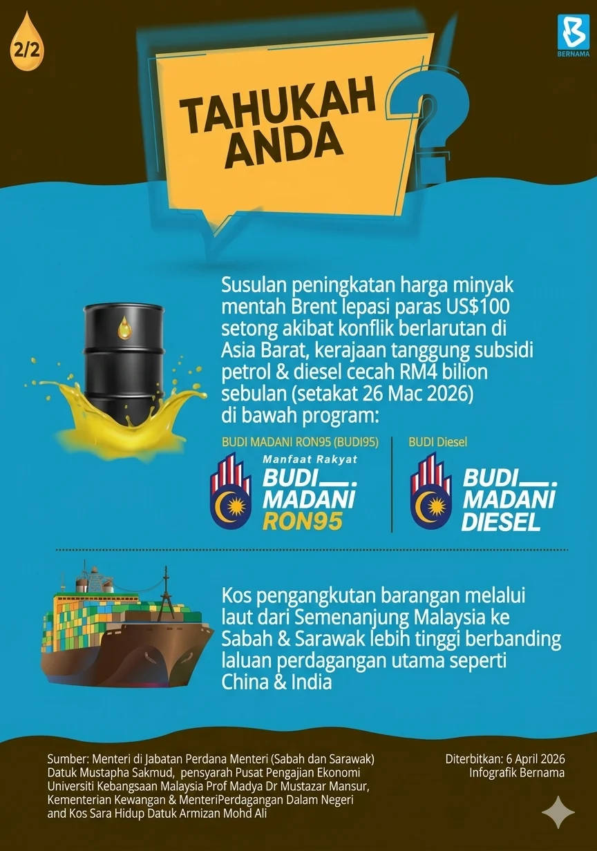 Menariknya, harga diesel di Sabah dan Sarawak kekal lebih rendah (RM2.15). Ini bukan kebetulan.