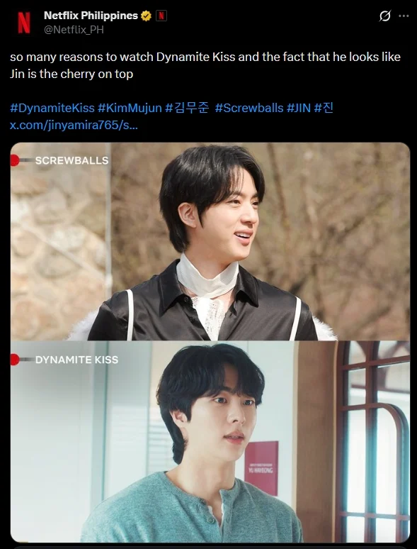 Aktor Korea Selatan, Kim Mu Jun vbaru-baru ini menjadi tular selepas penonton drama Korea ‘Dynamite Kiss’ mendakwa wajahnya mirip ahli kumpulan BTS iaitu Jin.