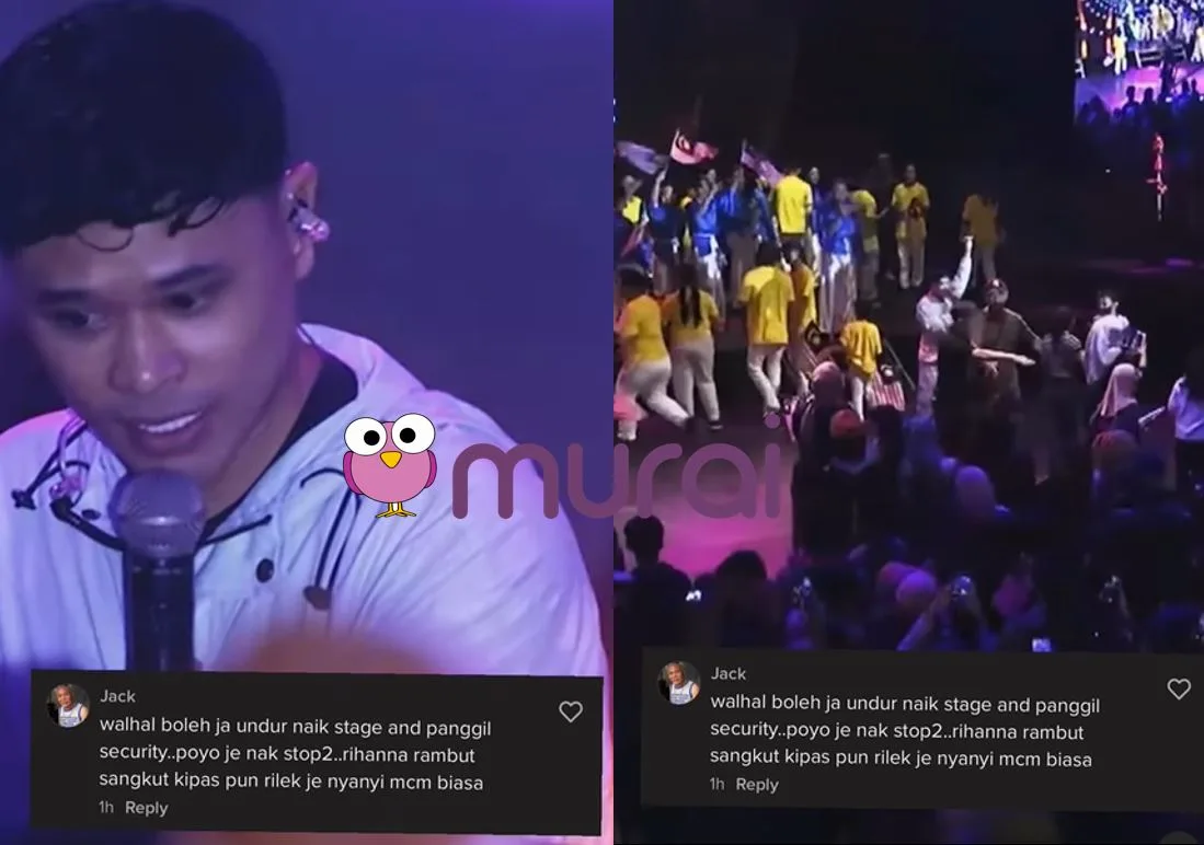 Menerusi video berdurasi dua minit 31 saat yang tular dalam media sosial itu Andi didapati tidak dapat meneruskan persembahannya selepas penonton menaiki pentas beramai-ramai.