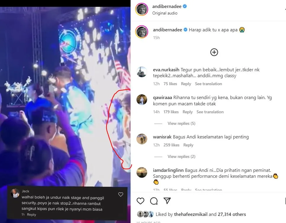 Rata-rata netizen mem’back up’ dan memuji Andi yang dilihat mampu mengawal keadaan dan tetap sopan serta profesional melayan peminatnya.
