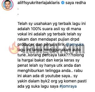 Menyusuli keputusan itu, rata-rata warga net yang sudah mendengar teaser yang dimuat naik Aliff di laman Instagram nya itu mengecam suara Aliff yang kedengaran agak sumbang.