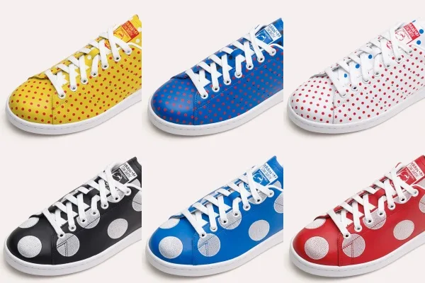 Pharell x Adidas merupakan kerjasama pertama pada 2014 yang menampilkan 10 coretan Adidas Stan Smith dan grafiti oleh Pharell Williams.