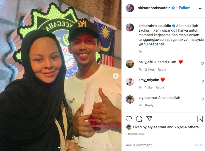 “Untuk makluman hanya keterangan Shuib sahaja yang diambil oleh pihak SPRM manakala Sarah hanya menemani suaminya sahaja.