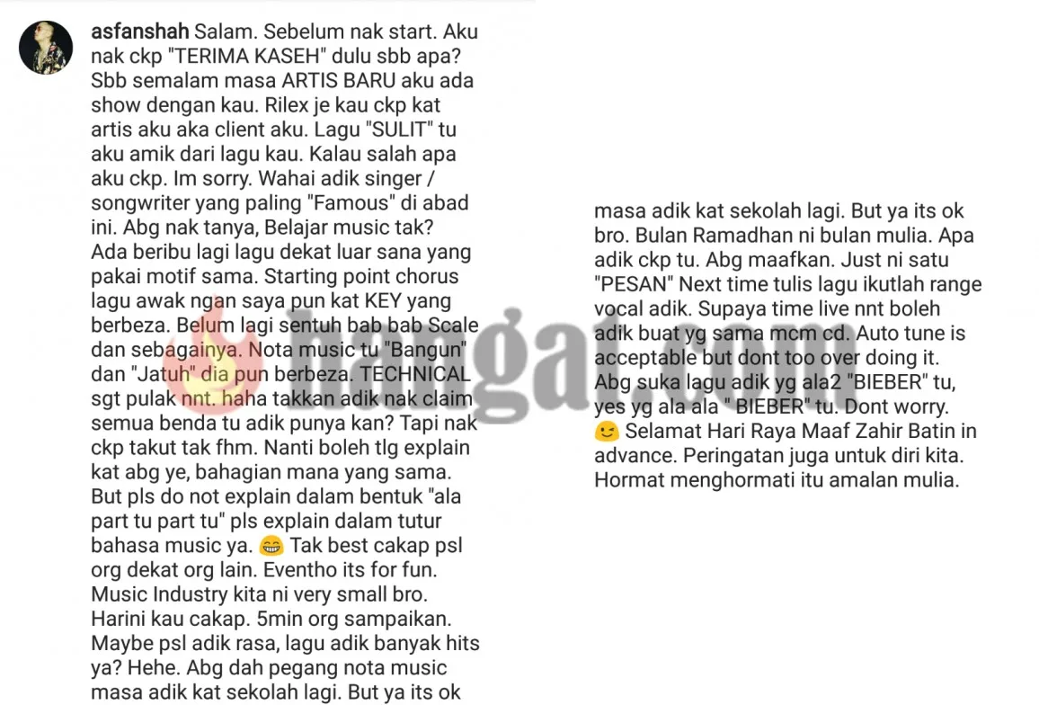 Kedua-duanya juga tidak mahu isu berkenaan terus berpanjangan dan mengambil keputusan untuk melupakannya sahaja.Baguslah jika begitu bermaafan di bulan yang mulia ini apatah lagi di dalam satu industri. All the best untuk kedua-duanya!