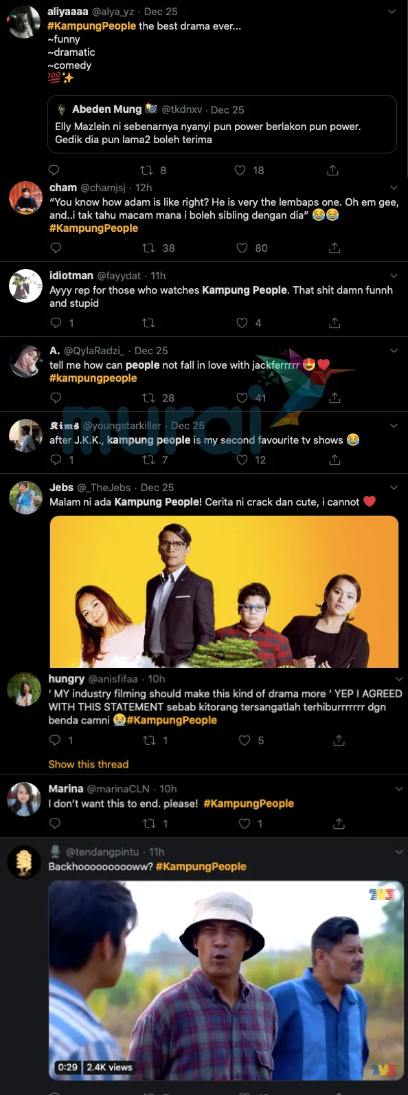 Ketika ini, sedang hangat ditayangkan sebuah drama bersiri berjudul Kampung People yang bersiaran di slot Lestary TV3. Drama yang menampilkan barisan pelakon popular seperti Elly Mazlein, Rashidi Ishak, Riena Diana dan Kamarul Eqifshah ini telah mencuri perhatian netizen apatah lagi hampir setiap episodnya turut trending di media sosial.