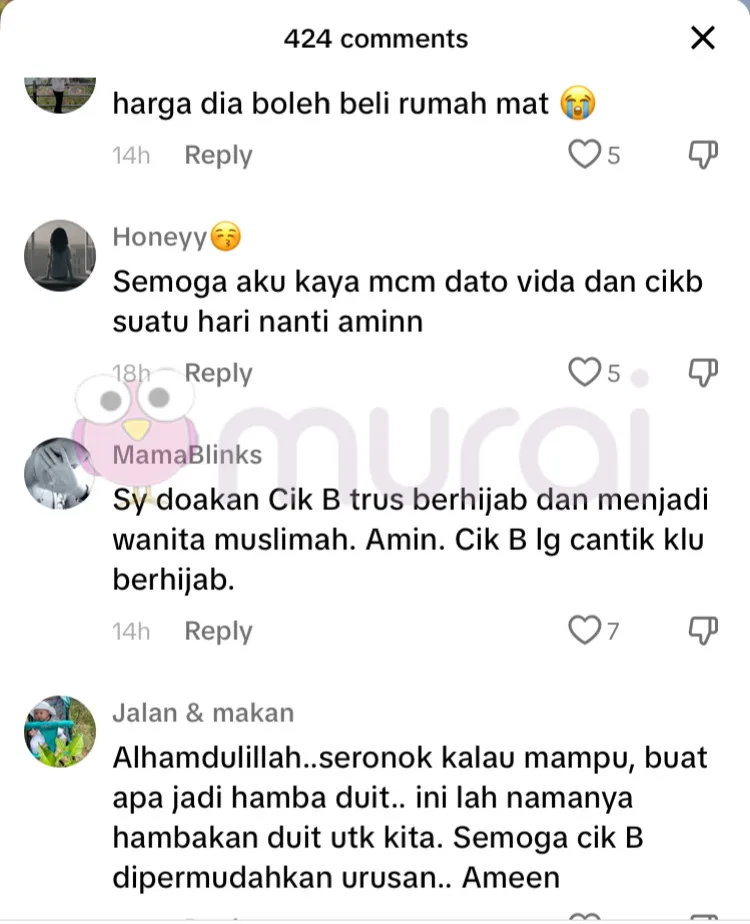 “Semoga aku kaya macam Dato Vida dan Cik B suatu hari nanti aminn.”