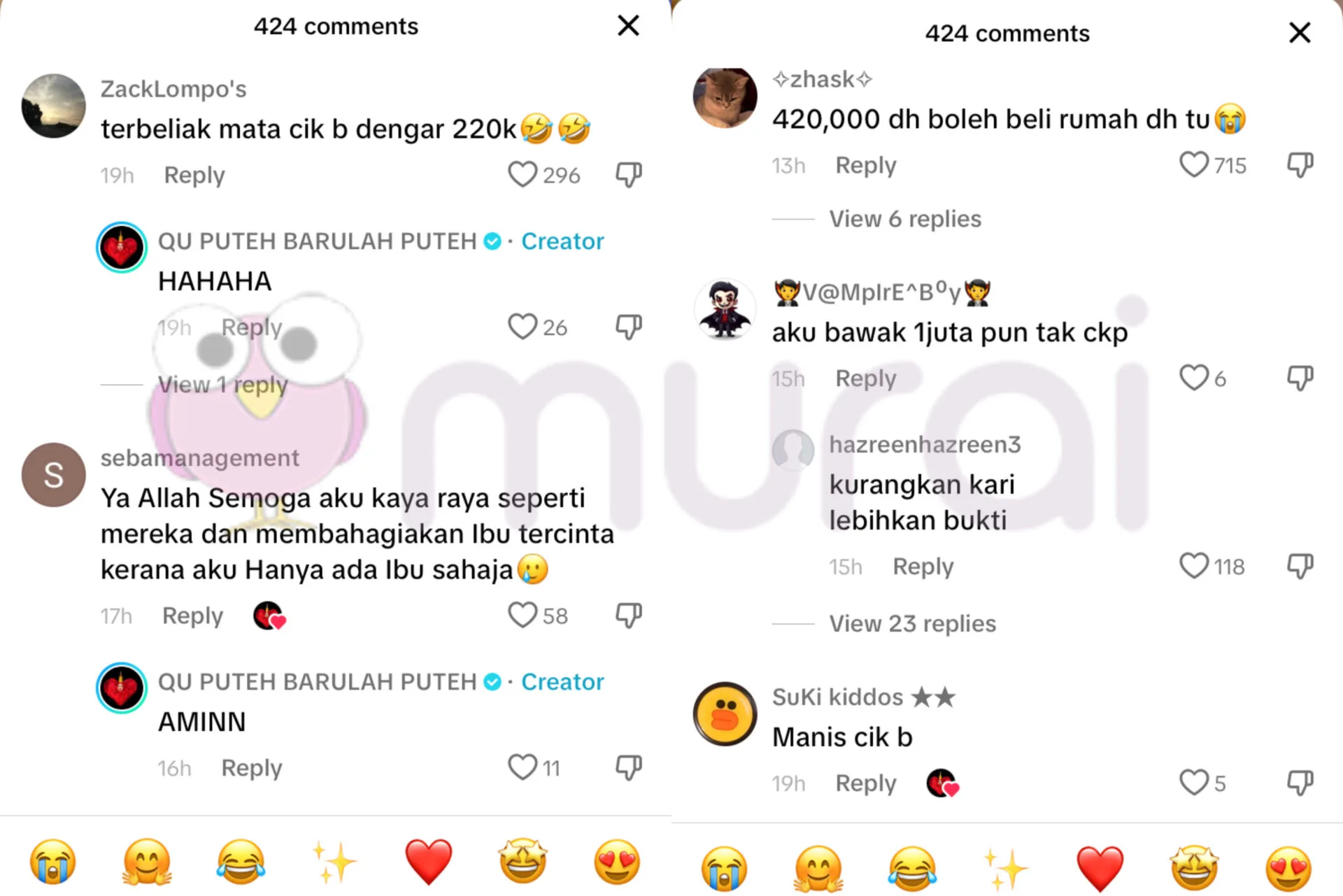 “Terbeliak mata Cik B dengar 220k ??.”