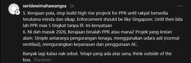 Perkongsian ini secara tidak langsung membuka ruang perbincangan lebih luas mengenai perancangan pembangunan kediaman bertingkat di Malaysia.