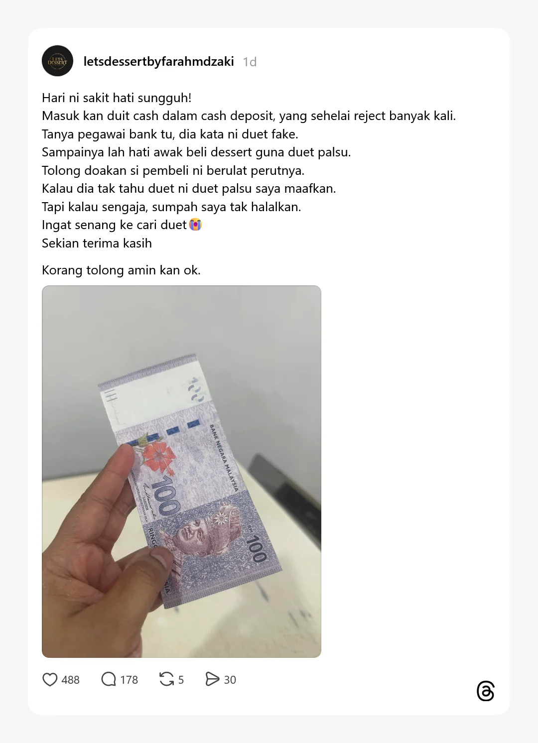 Kes seperti ini menjadi peringatan penting agar orang ramai lebih berhati-hati ketika menerima wang tunai, terutama dalam urusan jual beli harian.