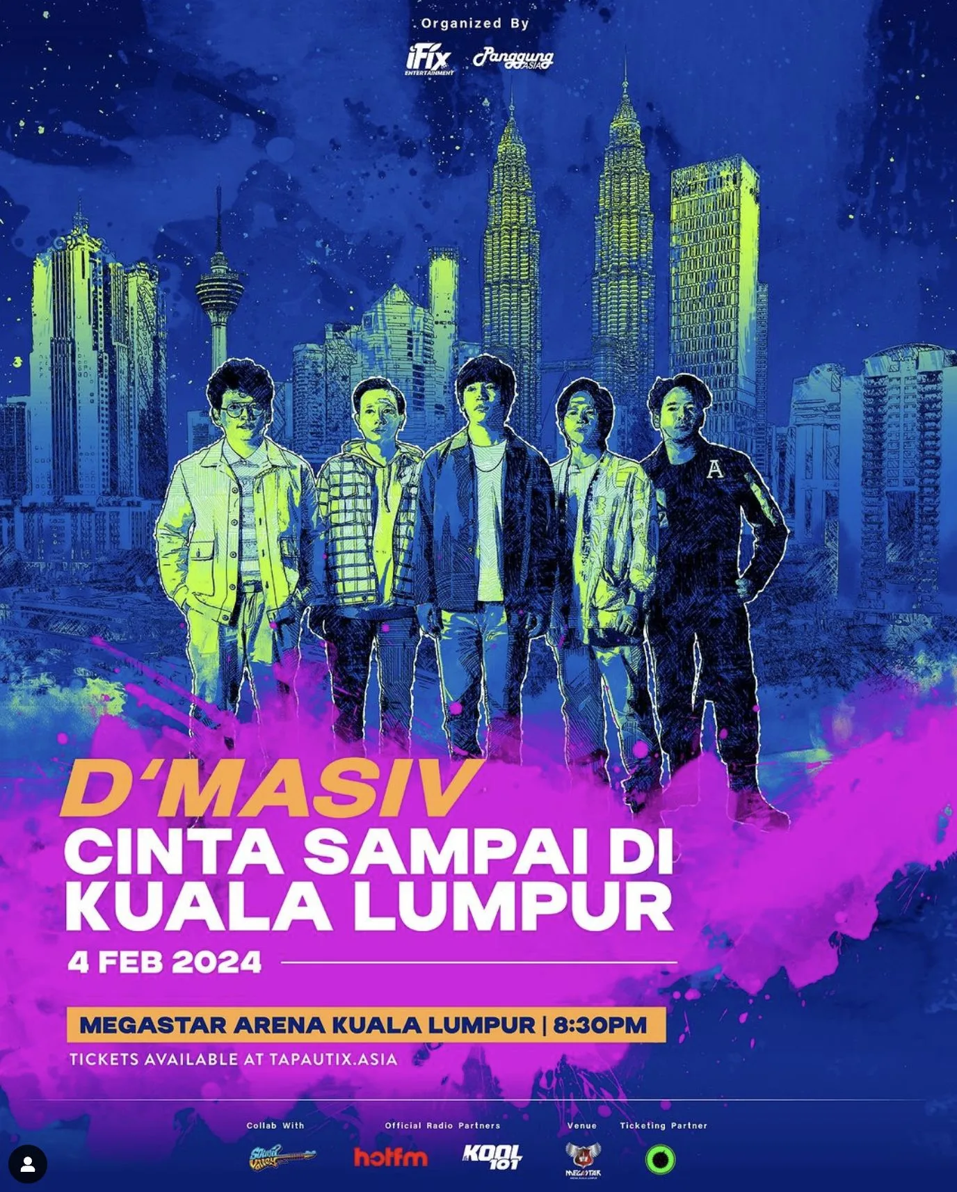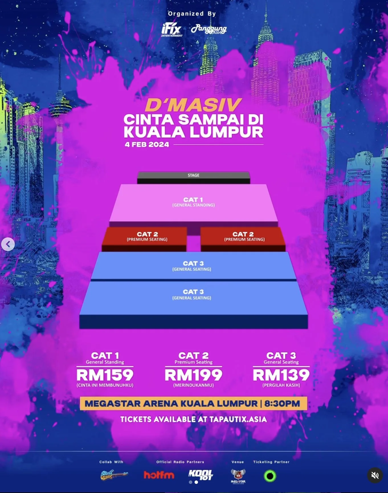 Tiket untuk konsert boleh didapati di www.tapautix.asia , bermula dari RM139 sahaja.
