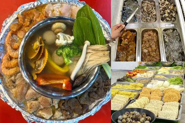 Berharga RM45, kamu boleh nikmati steamboat dengan sepuas hati menerusi pelbagai pilihan seperti makanan laut, daging, bebola, sos pencicah, air balang, nasi goreng, mi kari hingga ke bubur. Memang puas hatilah!