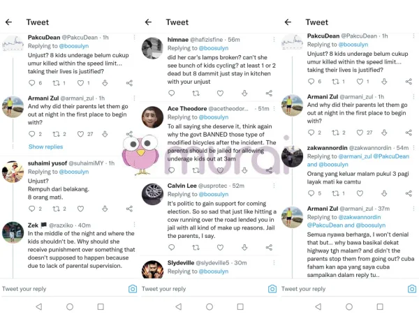 “Semua nyawa berharga, saya tak nafikan itu tapi.. Kenapa bawa basikal dekat jalanraya tengah malam? Dan ibu bapa mereka tak larang mereka dari keluar?”