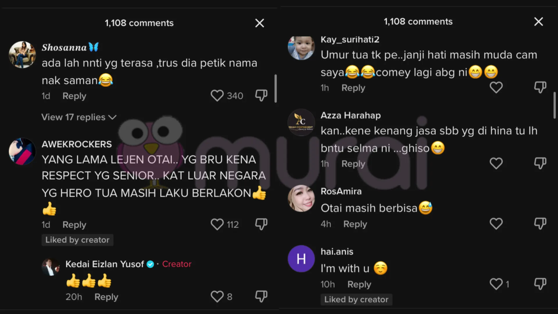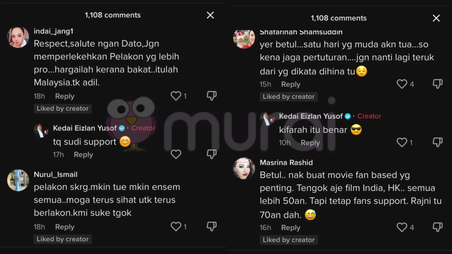 “Respect, salute dengan dato. jangan memperlekehkan pelakon yang lebih pro. Hargailah kerana bakat..Itulah Malaysia, tak adil.”
