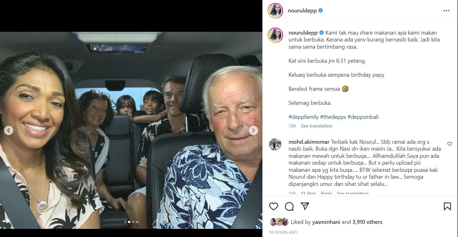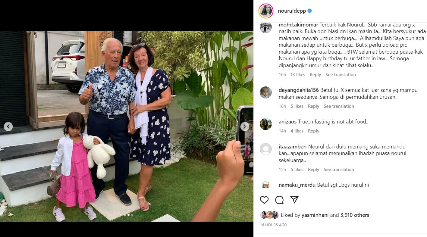 Malah diruangan komen, netizen juga turut mendoakan kesihatan yang berpanjangan untuk Nourul sekeluarga.