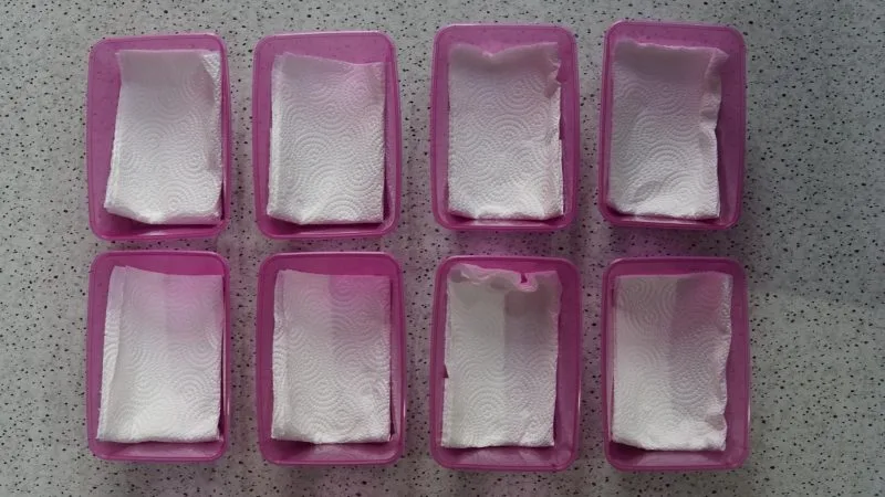 Untuk mengekalkan kelembapan di dalam bekas, pastikan anda meletakkan tisu atau tuala basah yang dilapik di dasar bekas. Sebaiknya gunakan tisu dapur kerana ini dapat mengekalkan kelembapan yang lebih baik.