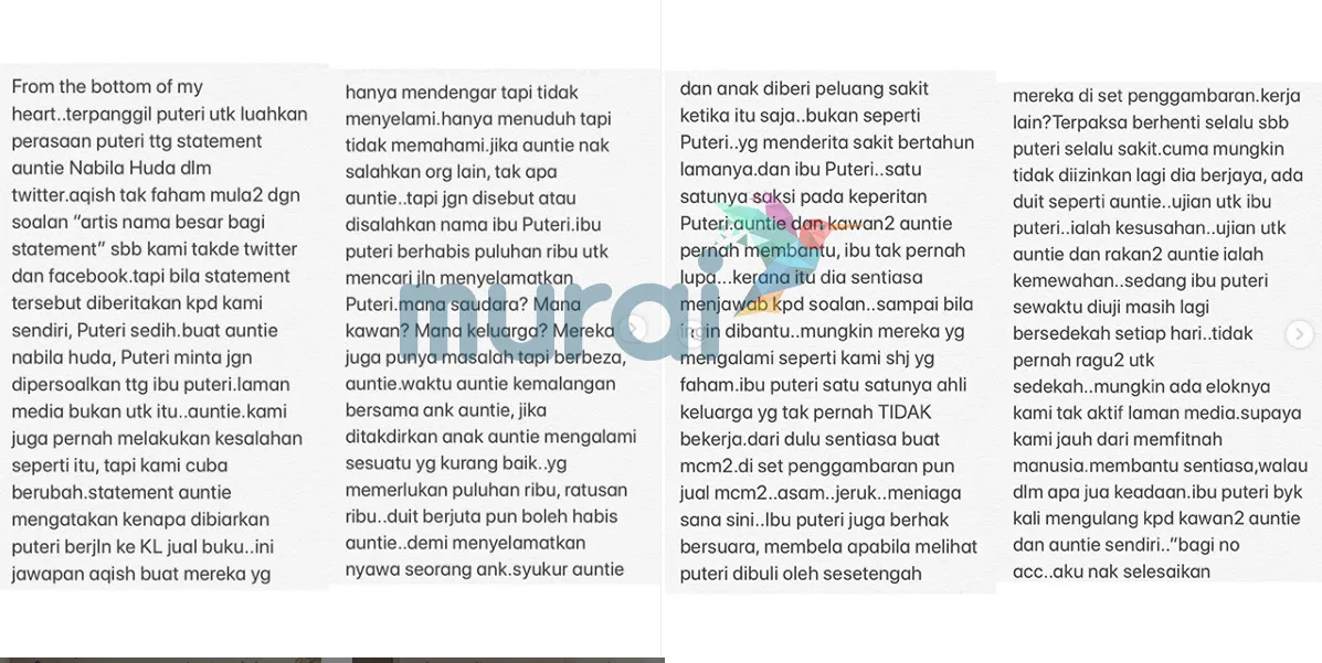 Sejak tularnya mengenai pelakon cilik, Puteri Balqis yang kini hidup dalam serba kekurangan menerima pelbagai komen daripada netizen apatah lagi mengenai tanggungjawab ibunya, Norashikin Mohd Aziz yang dikecam kononnya seperti sengaja membiarkan anaknya menjual buku di jalanan.