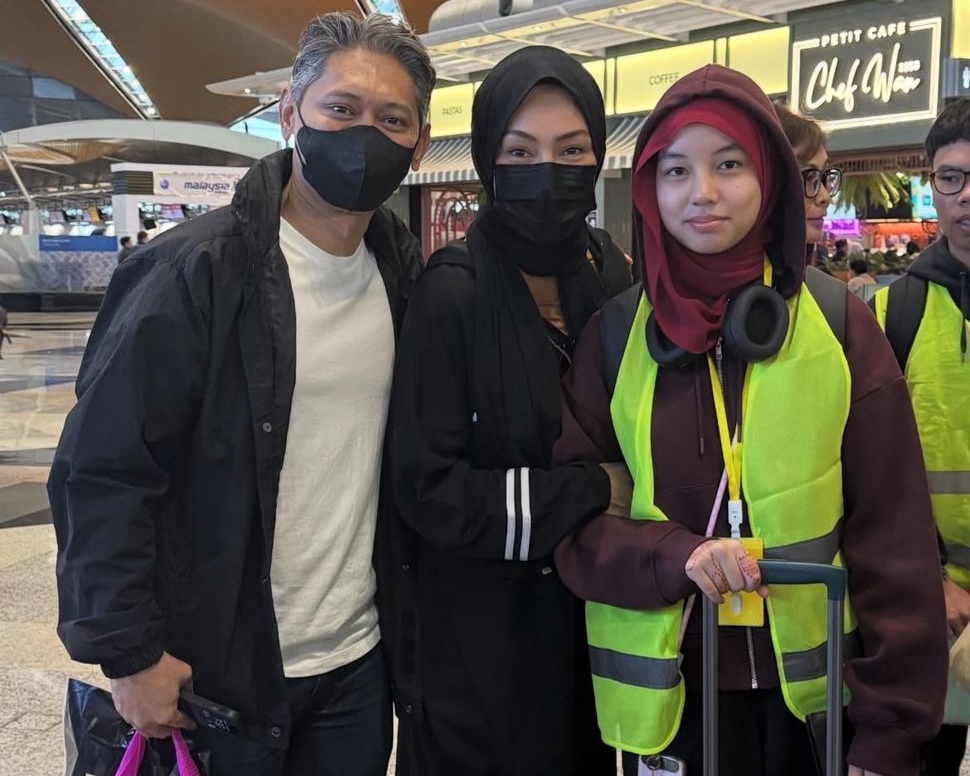 “Selamat datang ke keluarga Mr E (Ezwan Zain)! Gembira sangat akhirnya dapat bertemu dengan ayah tiri Aleesya. Jadi kami bertiga menghantarnya ke KLIA pagi semalam.”