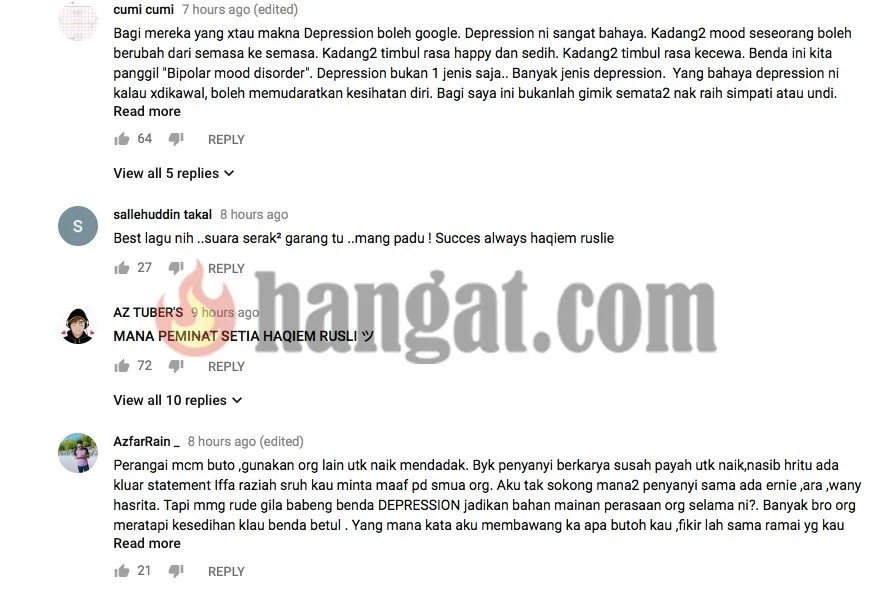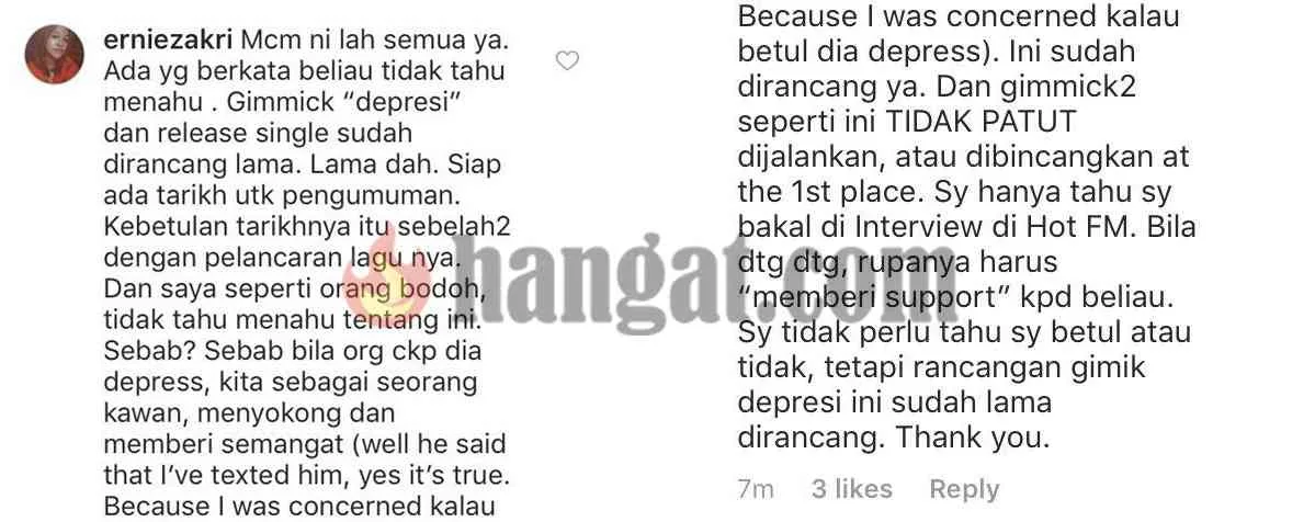 Melihatkan isu itu semakin tlar, menerusi ruangan komen, Ernie mendedahkan satu lagi perkara yang agak mengejutkan dimana menurutnya Haqiem tidak pernah mengalami masalah depresi sehingga menyebabkan mahu berhenti menyanyi malah ianya sekadar gimik yang sudah lama dirancang.