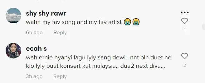 Akaun tiktok milik peminat Ernie Zakri @erninators telah memuat naik video Ernie yang sedang menyanyikan lagu ‘Sang Dewi’ dan video tersebut tular di laman sosial tiktok sehingga menambat hati para peminatnya.